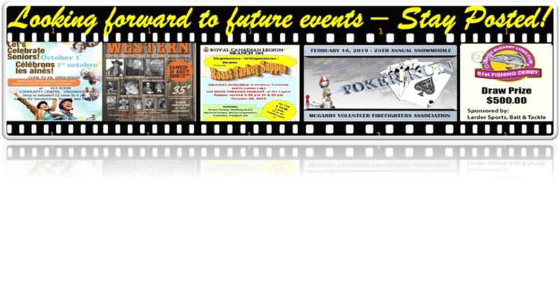 The Township of McGarry may be a small northern community but it is jam packed with events. Check back when life after Covid returns. Events to look forward to include: